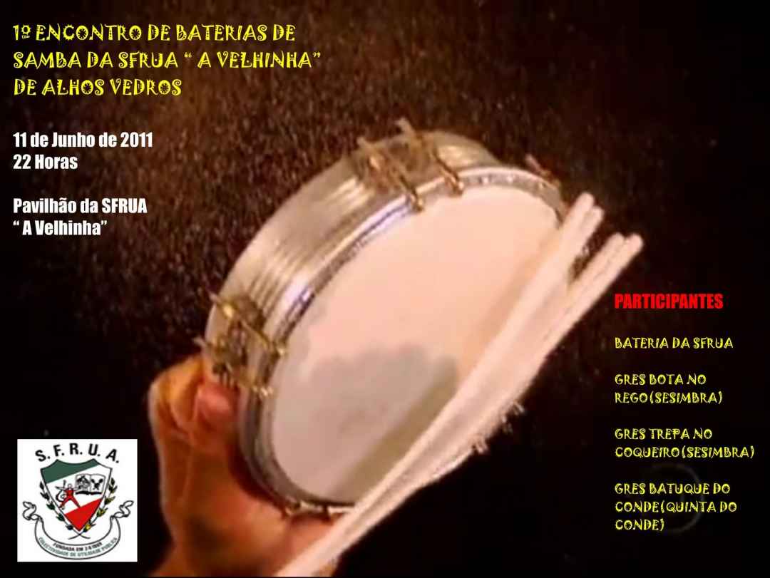 O 1º Encontro de Baterias de Samba da SFRUA “A Velhinha” de Alhos Vedros, vai realizar-se no nosso pavilhão no dia 11 de Junho de 2011 a partir das...