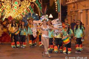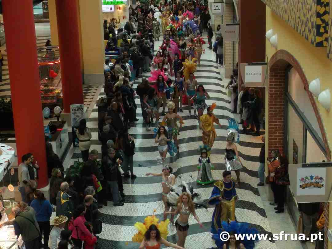 Passistas da SFRUA no desfile de Carnaval do Fórum Montijo