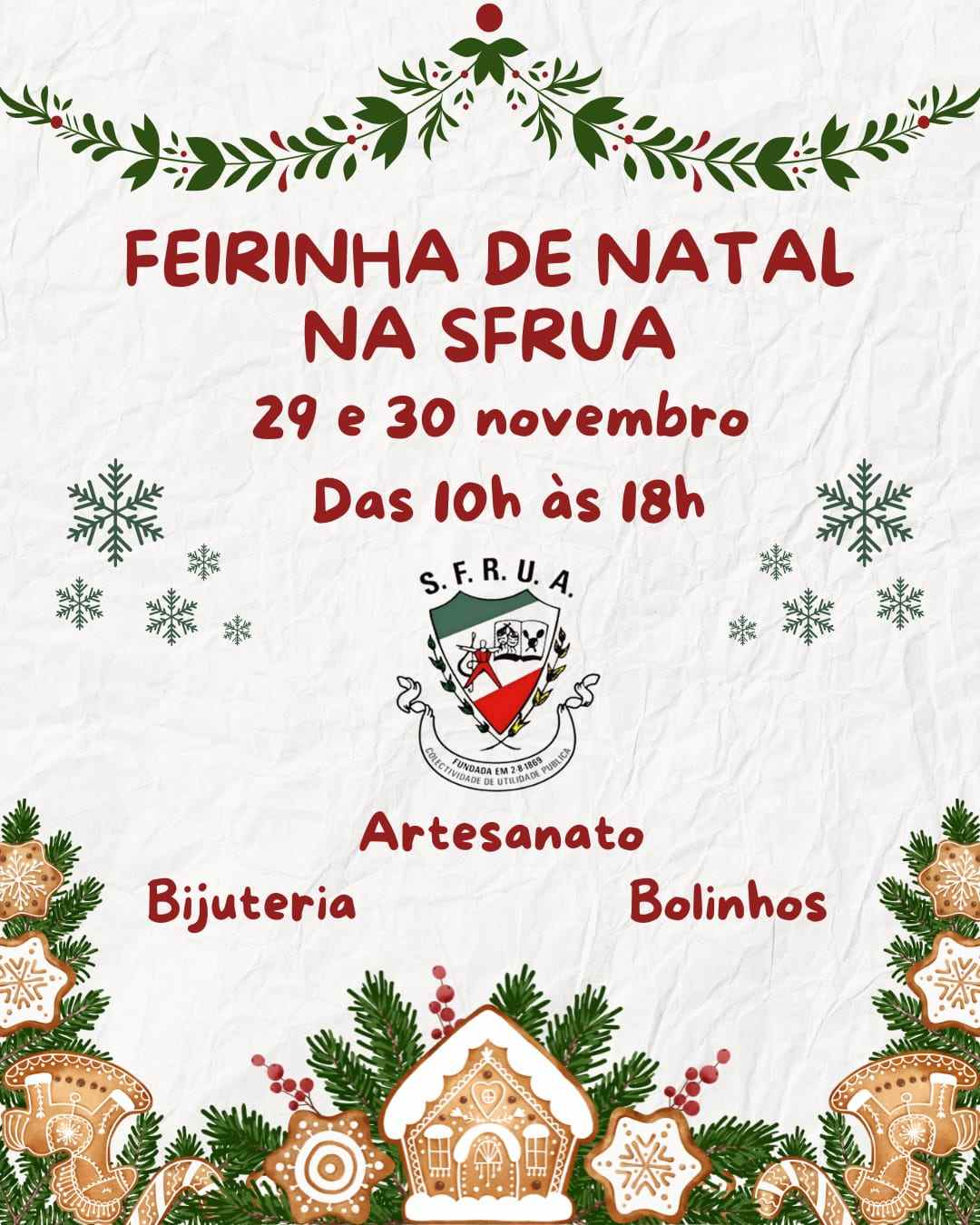SFRUA Feirinha de Natal na SFRUA, dias 29 e 30 de novembro 24 Visualizações 4 de Novembro, 2025 Partilhar FacebookXWhatsAppLinkedIn Façam-nos uma visita! FacebookXWhatsAppLinkedIn Relacionado Méritos desportivos 1º Peddy Paper: Fotos, resultados e classificações Trampolins: 7º Torneio de Inverno / 3º Torneio J.Cruz A SFRUA no Desfile da Liberdade – 42º aniversário do 25 de Abril Palestra – Nutrição no Desporto Espetáculo do grupo T4GIDE: “Canções de Sempre” FICHAS INSCRIÇÃO 2025 Partilhar FacebookXWhatsAppLinkedIn REDES SOCIAISFacebook Instagram Rede X Youtube Publicações por ÁreaPublicações por Área Seleccionar categoria ACTIVIDADES VÁRIAS (20) BAILES (7) Arquivo (1) ATLETISMO (2) BADMINTON (62) BALLET (48) BASQUETEBOL (6) CAPOEIRA (24) CARNAVAL (298) BATERIA SAMBA (85) PASSISTAS (29) Samba-SFRUA (8) DANÇAS (26) HIP-HOP (2) ZUMBA (8) EVENTOS (39) FOTOS (255) FUTSAL (2) GINÁSTICA (279) AERÓBICA (26) COMBAT (14) TRAMPOLINS (176) GRUPO CORAL (23) HORÁRIOS (31) JUDO (8) KARATÉ (8) MEMÓRIAS (29) PATINAGEM (139) PILATES (2) SFRUA (382) ASSEMBLEIAS (17) TEATRO (9) VÍDEOS (121) YOGA (2)