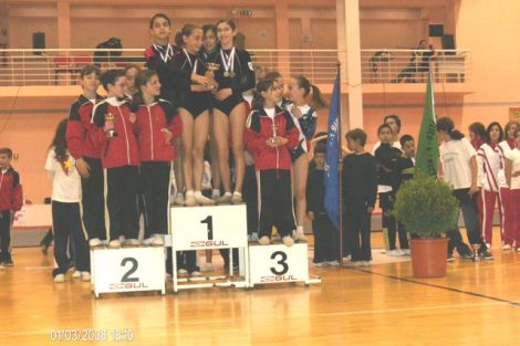 Os 15 ginastas da Sociedade Filarmónica Recreativa e União Alhosvedrense que participaram neste evento na modalidade de Mini-Trampolim, subiram ao pódio 9 vezes tendo-se sagrado Campeões e Vice Campeões Distritais.